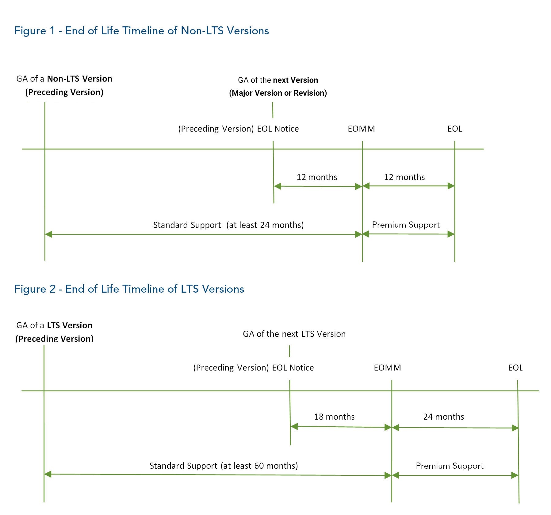 End of Life (“EOL”) means the date when all technical support ceases for a discontinued version of the Software Programs. Generally, EOL occurs 12 months after EOMM for non-LTS versions and 24 months after EOMM for LTS versions.